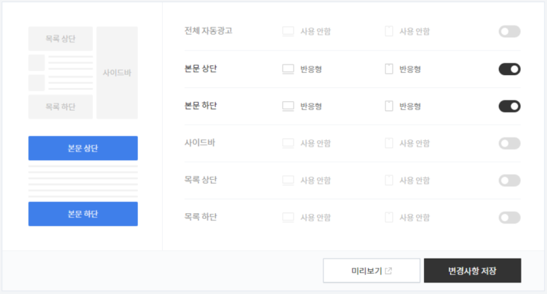 티스토리 블로그는 광고설정이 자유롭고상 하단, 그리고 목록 상 하단, 사이드바에 광고를 달 수 있는데요. 스킨의 형태에 따라 광고 설정 여부가 달라질 수 있습니다. 그리고 광고를 많이, 전략적으로 달 수 있다면 클릭율을 더 높일 수 있고 클릭율은 곧바로 수익이 됩니다.